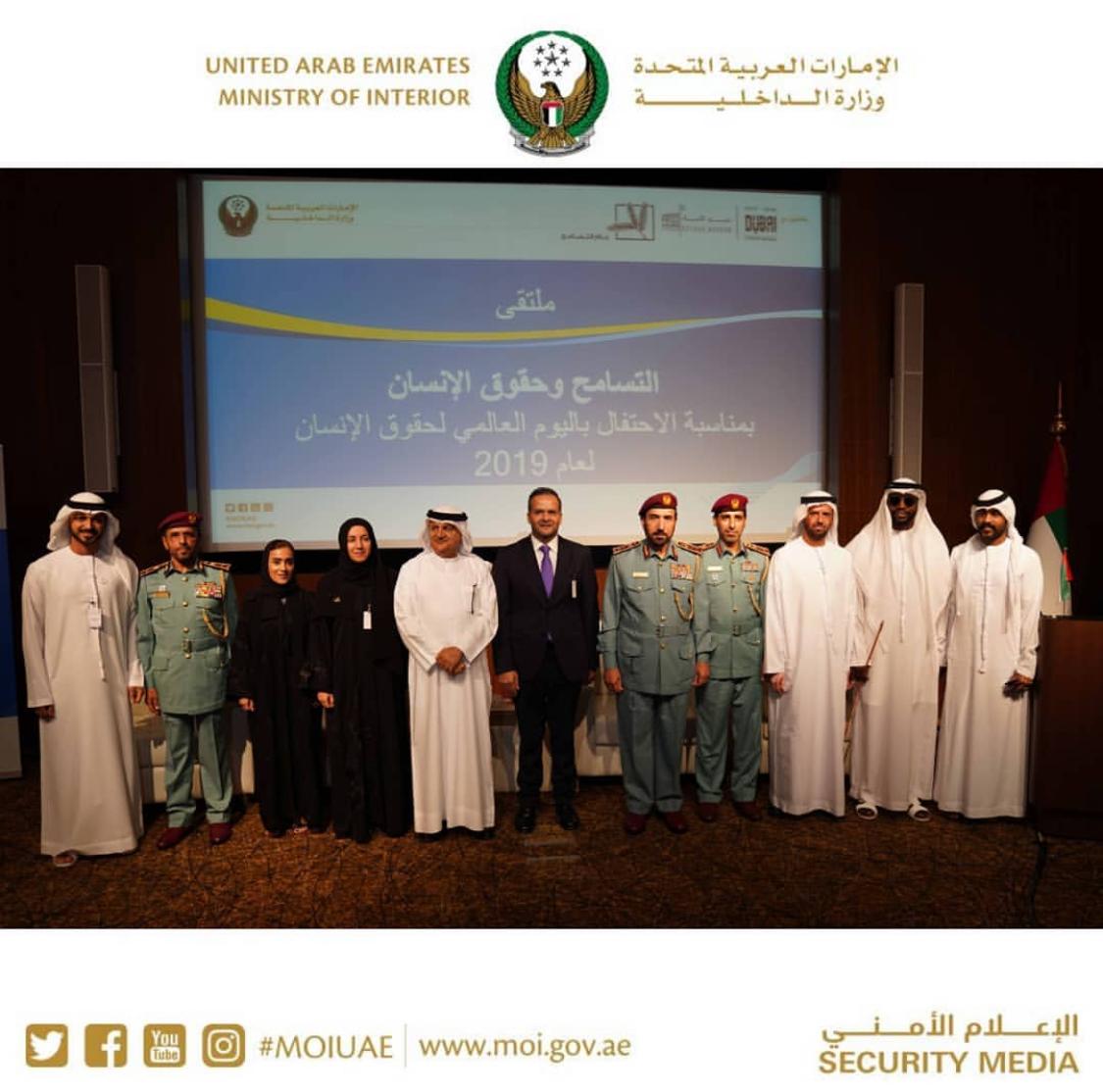 (L) Commander in Chief Dubai Police Lt. Gen. Abdullah Khalifa Al Marri @DubaiInnovationWeek in Police HQ. Below, recognition award from Ministry of the Interior Undersecretary Gen. Saif Al Shjafar and President of the World Tolerance Foundation.