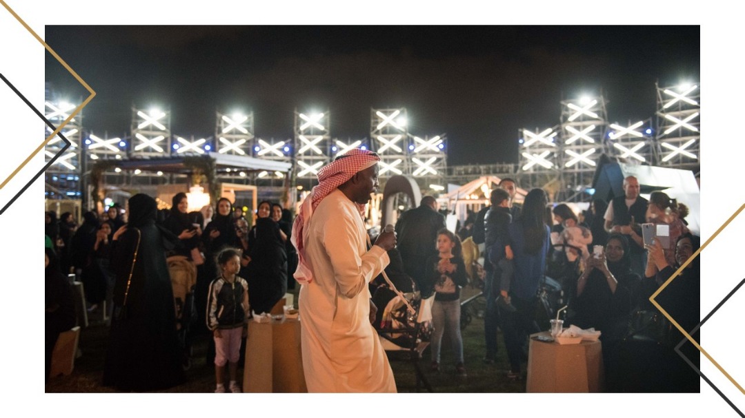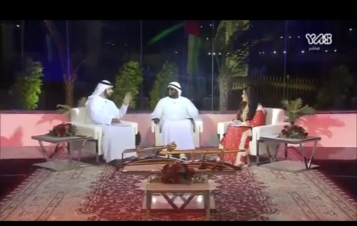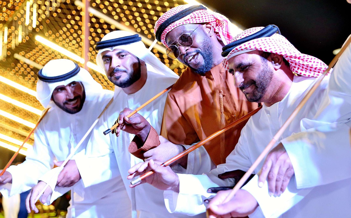 Right colored picture performing a tradition Emirati dance with locals in Ras Al Khaimah